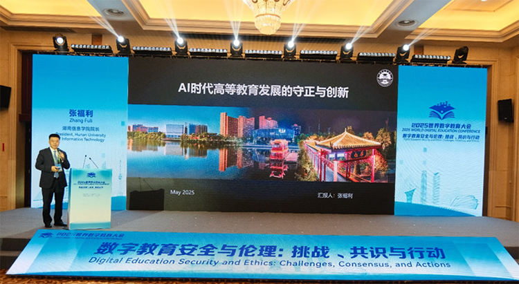 在平行会议“数字教育安全与伦理:挑战、共识与行动”上,湖南信息学院党委副书记、校长张福利参加了人机交互与信息安全中心揭牌仪式,并与图灵奖得主、中国科学院外籍院士约翰·霍普克洛夫特(john hopcroft),诺贝尔物理学奖得主、美国加州理工学院教授巴里·巴里什(barry c.barish),中国工程院院士方滨兴,上海交通大学教授、华为操作系统首席科学家陈海波分别作主旨报告。