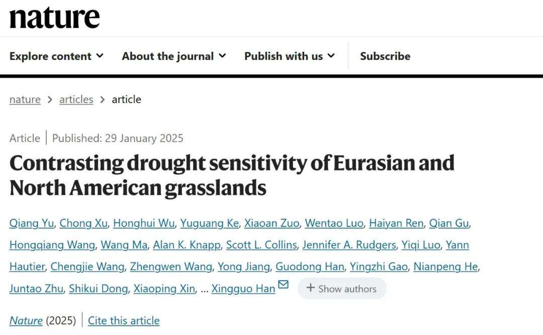 该研究结果表明,欧亚草原对极端干旱的敏感性高于北美草原,而非优势物种在决定极端干旱对草原生产力的影响方面发挥着关键作用。该研究得到国家重点研发计划、国家自然科学基金等项目的资助。