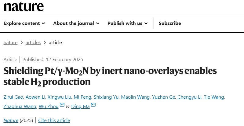 研究团队在《nature》杂志发表的研究成果题为“shieldingpt/γ-mo2n by inert nano-overlays enables stable h2 production”,聚焦催化剂稳定性,延续了马丁教授此前在甲醇和水重整制氢方面的研究,创新性地引入稀土元素对催化剂进行改造,开发出了一种全新且泛用的高活性产氢催化剂稳定策略。研究发现,当稀土元素存在于催化剂表面并保护住催化剂的“非界面活性位”时,催化剂的寿命得到了大幅提升。具体而言,催化剂中每个pt原子可以产生1500万个氢分子,这一“转换数”整整超过了此前报道的最高记录一个数量级。这一历史性突破为高效、稳定的制氢技术提供了全新思路。