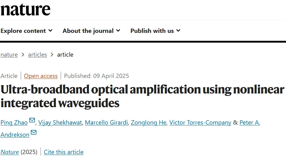近日,四川大学电子信息学院赵平团队联合瑞典查尔姆斯理工大学peter andrekson教授团队,在光放大器制备领域取得重要进展。相关研究以ultra-broadband optical amplification using nonlinear integrated waveguides为题发表于nature。四川大学赵平研究员为论文第一作者。