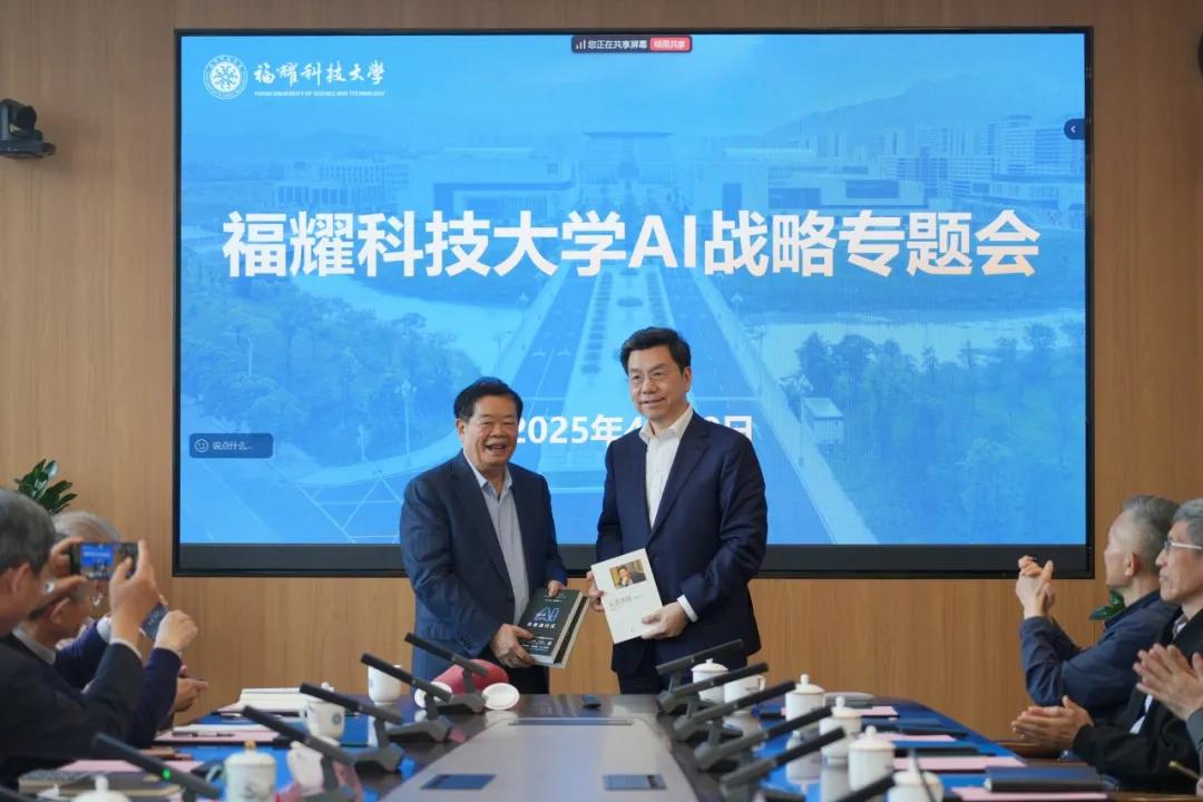 会上,曹德旺理事长向李开复博士颁发了福建福耀科技大学理事会理事聘书,并与李开复博士互赠了书籍。曹德旺理事长表示,“感谢李开复博士应邀担任学校理事会理事。作为国际人工智能领域的顶尖专家,李博士对ai战略的前瞻洞察与教育愿景的深刻思考,必将为学校发展注入新的智慧与活力,令人期待。”