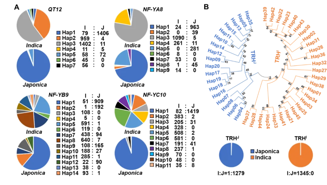 性状调控单倍型(trhs)对籼粳分化有很大贡献