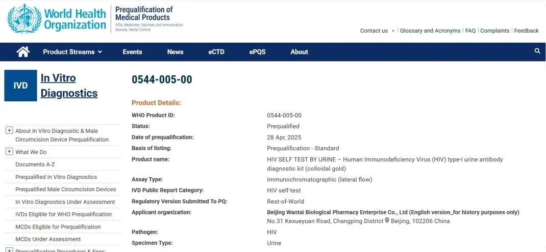 近日,由厦门大学和万泰生物联合研制的人类免疫缺陷病毒1型尿液抗体检测试剂盒(胶体金法)(英文名称:hiv self test by urine – human immunodeficiency virus (hiv) type-i urine antibody diagnostic kit (colloidal gold),简称:hiv尿液自检试剂)正式获得世界卫生组织预认证(who pq),被列入体外诊断产品预认证清单。这是全球第一个获得who pq认证的hiv尿液自检试剂盒,也是双方联合研制的第三个获此认证的hiv检测产品,标志着我国研发机构和企业在hiv检测领域的创新能力与产品质量再次获得国际权威认可。