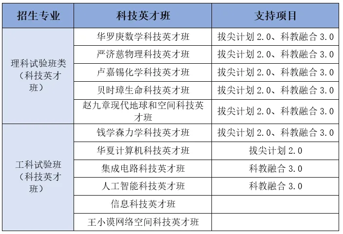 以上“科教融合3.0”科技英才班面向高考招生,此外,学生入校后仍有机会进入全部的19个科技英才班学习。