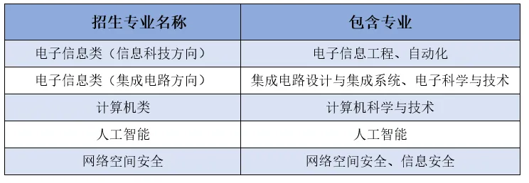 2025年,学校对信智类本科招生专业进行优化扩容,单独招收人工智能本科专业,并对电子信息类专业调整,增加集成电路方向单独招生,新增专业均纳入中国科学院“基础和前沿交叉学科贯通培养工程”,致力于培养满足社会需要、国家急需紧缺的创新人才。
