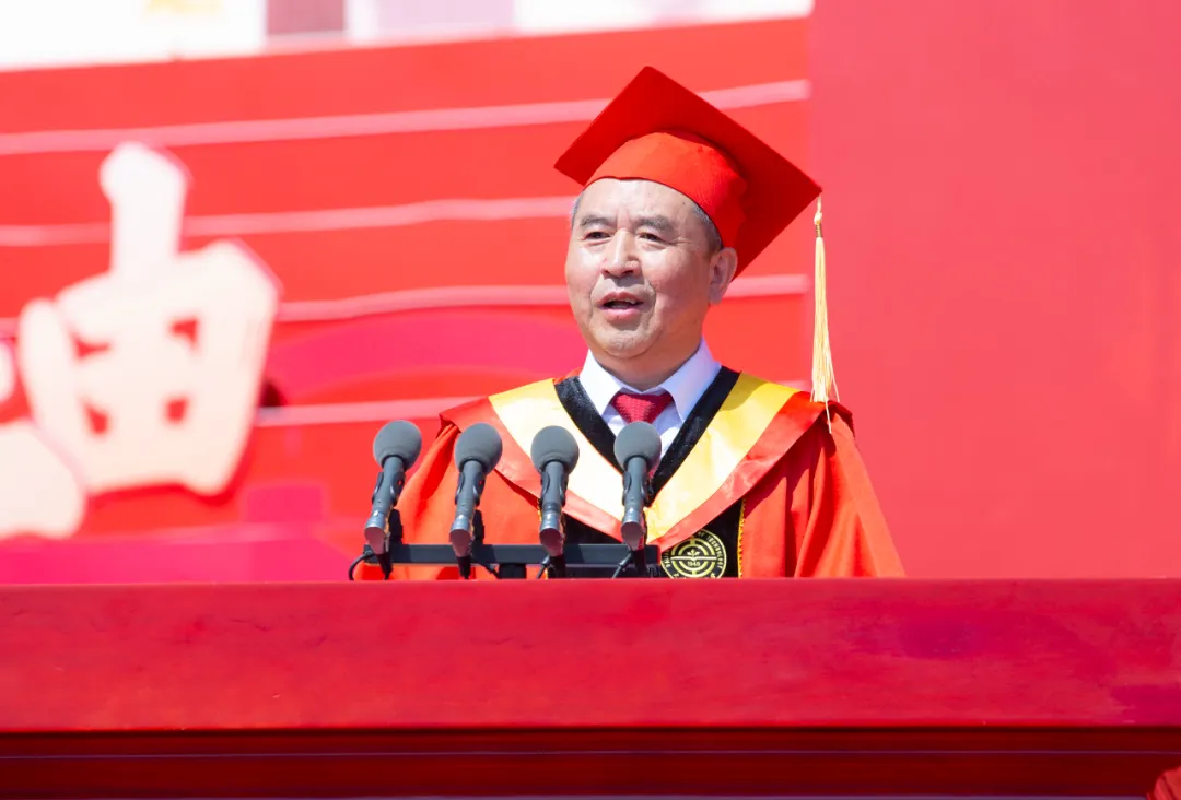 今天,你们即将奔赴不同的岗位,有的投身高校院所,奉献科学、贡献教育、攻克国家关键核心技术;有的奔赴西部、深入基层,为区域振兴、服务百姓奉献力量;有的投身头部企业、新兴产业,服务重大国家战略;有的将在国内外知名大学继续深造,为成就更优秀的你积蓄能量。不管在哪行哪业,请记住,你的格局决定你的高度,希望你们胸有大格局、心怀大志向,能以国家需求为指引,在“强国有我”的使命驱动下,以“舍我其谁”的勇气,在中国式现代化建设中肩负大使命、展现大担当,努力成为学术大师、工程帅才、行业精英、治国栋梁,都能成为国家脊梁!