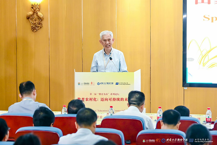 西南大学党委书记张卫国代表学校致辞。张卫国指出,西南大学长期致力于西部农村教育发展,晏阳初等先贤曾在西南大学前身之一的中国乡村建设学院探索乡村教育发展道路,学校现已成为国内农村教育重要研究基地。办学119年来,学校以“教育兴国”为使命,众多师生投身乡村建设,为乡村教育振兴做出了重要贡献。展望未来,学校将致力于推动农村教育模式创新,在教育强国建设中作出应有贡献。