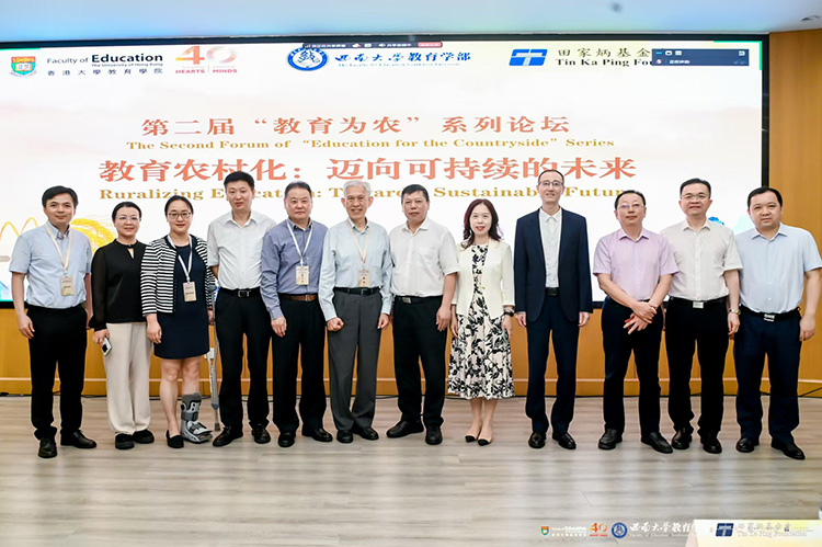 6月14日至6月15日,由西南大学教育学部与香港大学教育学院联合举办、田家炳基金会资助的第二届“教育为农”系列论坛在西南大学成功举办。西南大学党委书记张卫国、田家炳基金会前任主席田庆先、香港大学教育学院院长杨锐、重庆市委统战部副部长李康、重庆市政协港澳台侨和外事委员会专职副主任何方、田家炳基金会副总干事萧开廷出席论坛开幕式,开幕式由西南大学党委副书记黄杰主持。来自澳大利亚、加拿大、日本、中国香港和内地高校、研究机构的专家学者,以及全国一线教育工作者共200余人线下参会,另有1.2万人次在线观看。