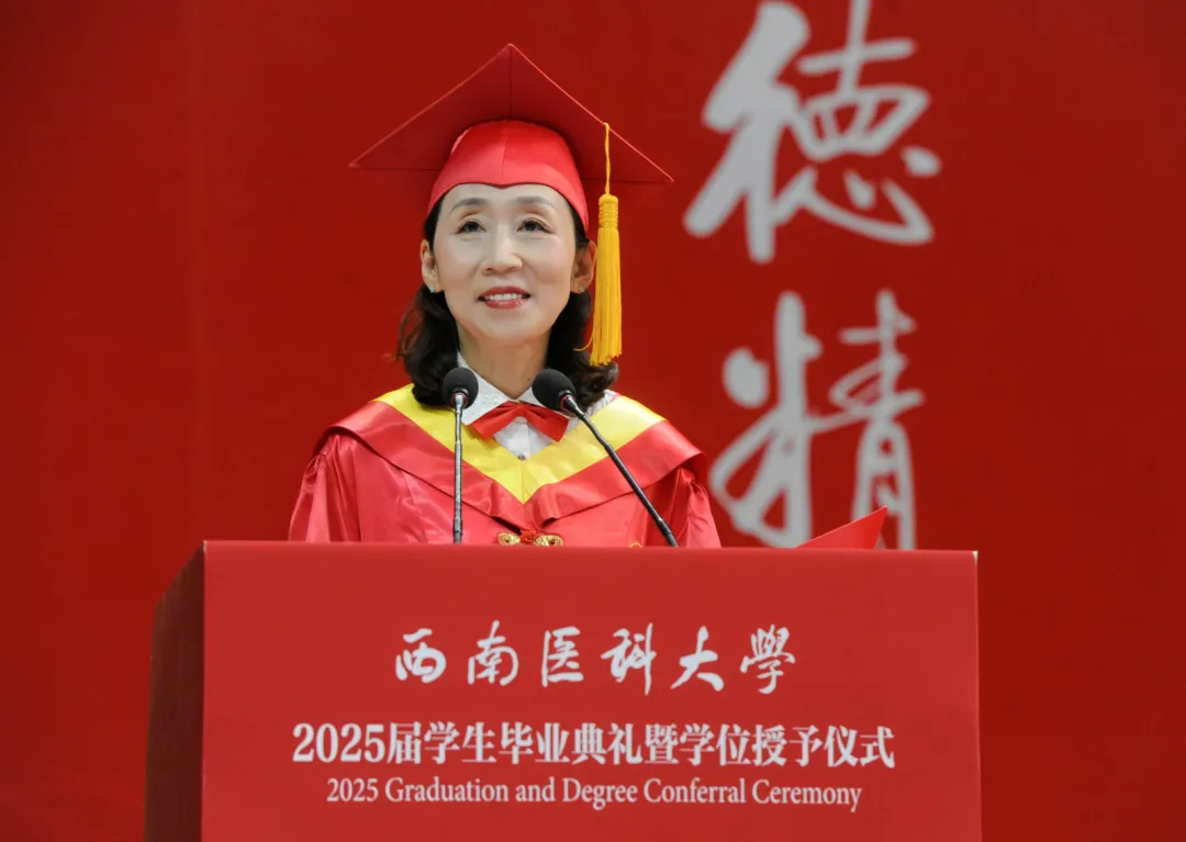 而你们,亲历了学校"七十年校庆" "申博成功"的高光时刻,用实验室通明的灯火、模拟法庭的激辩、临床技能大赛的娴熟、奥体运动场上的冲刺,接续书写了永远未完的"育人传奇"。历史从不抽象,它是由无数个"你在场"的瞬间构成——谢谢同学们,是你们让西南医大的年轮有了更蓬勃的张力!