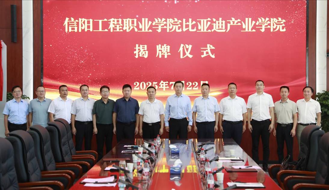 信阳工程职业学院校长黄功学表示,产业学院的建设离不开各级政府的扶持、教育厅的指导及比亚迪的资源支持,政校企三方聚力是学院健康发展的基石。学校将重点推进三方面工作:一是精准匹配产业需求,围绕新能源汽车、高端装备制造等产业链,建设新能源汽车技术、智能机电技术等特色专业群,与比亚迪共建“需求分析—标准制定—课程开发—动态更新”闭环机制,确保人才培养与产业技术迭代同步;二是共建高水平“双师”团队,选派骨干教师赴比亚迪一线实践,设立“比亚迪工程师工作站”,邀请企业专家参与课程设计与教学指导,实现师资能力与企业技术前沿无缝对接;三是构筑共享型实训生态,依托比亚迪技术共建校内实训基地,引入真实生产项目与工艺标准,强化学生实战能力。