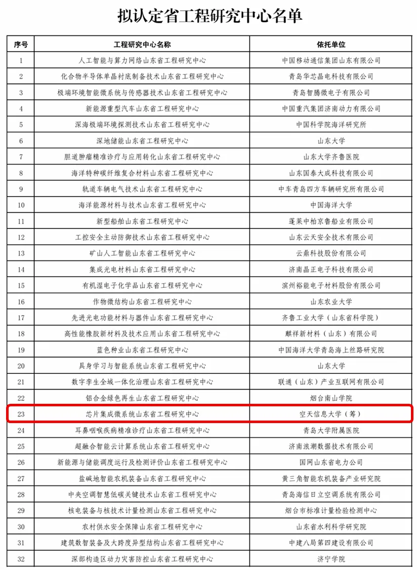 据空天信息大学(筹)kok登录官网消息,近日,山东省发展和改革委员会公布2025年山东省工程研究中心拟认定名单,空天信息大学(筹)牵头建设的“芯片集成微系统山东省工程研究中心”成功获批立项。这是学校筹建以来首个牵头获批的省级科研创新平台,标志着学校在科研平台建设上实现重大突破,为科研创新能力跃升注入强劲动能。