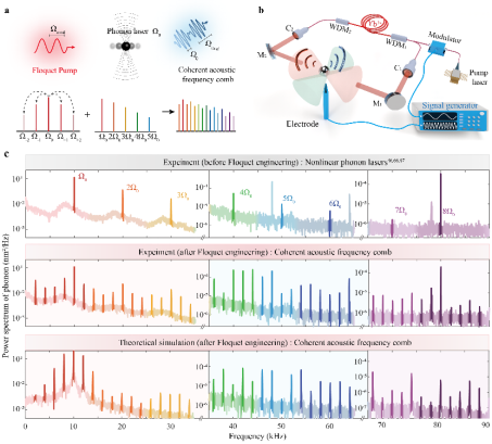 近日,国防科技大学前沿交叉学科学院某团队联合理学院,提出将floquet调控技术应用于非线性声子激光中,成功产生了国际上首个声子激光频率梳,预期在高分辨率声学传感、相干声信息处理及拓扑声子学等领域具有广阔的应用前景。研究成果以“基于floquet工程的声子激光频率梳(coherent acoustic frequency comb via floquet engineering of optical tweezer phonon lasers)”为题发表在国际顶级期刊《科学进展》(science advances)上。