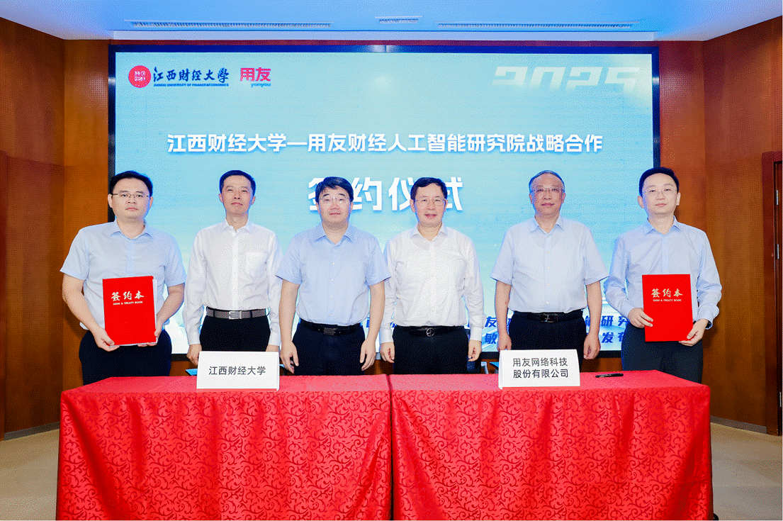 在既往良好合作基础上,用友与江西财经大学将进一步深化合作,以“江西财经大学-用友财经人工智能研究院”为平台,培养和输送具备复合能力的智能财经高端人才;完成一批高水平产学研项目,实现科技成果的有效转化;推动建立开放创新生态,提升社会影响力和行业引领力。双方本着优势互补、资源共享、互利共赢、协同发展的原则,共同推动财经与人工智能领域的深度融合和创新发展。