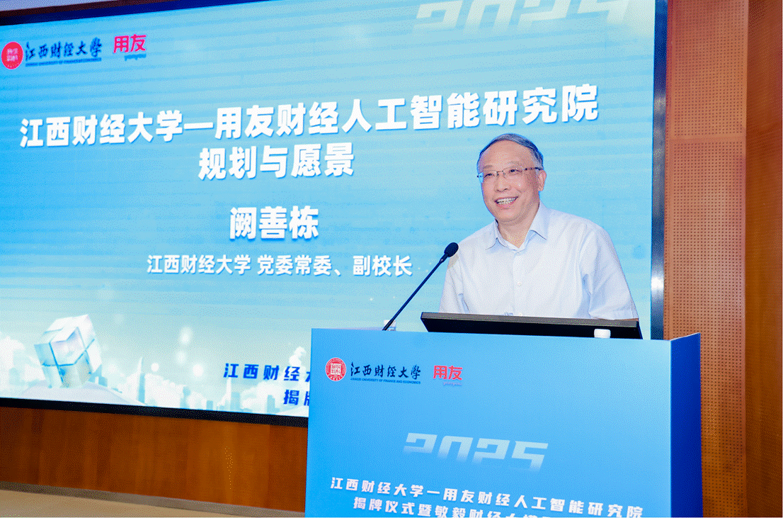 江西财经大学党委常委、副校长阙善栋系统介绍了研究院的发展规划与愿景。他表示,研究院旨在引领“智能 财经”领域技术创新、产学研融合与人才培养,全力打造财经人工智能技术创新策源地、产学研用深度融合新高地与复合型人才培养主阵地,为财经数字化转型与经济高质量发展提供支撑。根据规划,用友网络科技股份有限公司与学校将进一步深化合作,以研究院为平台,攻关财经知识图谱、财经大模型、财税数据智能治理等关键技术;打通校企资源壁垒,搭建“科研-转化-应用”闭环,推动高校成果转化;培养“懂财经 通ai”的复合型精英,为行业输送“技术落地能力 财经素养”的核心力量。