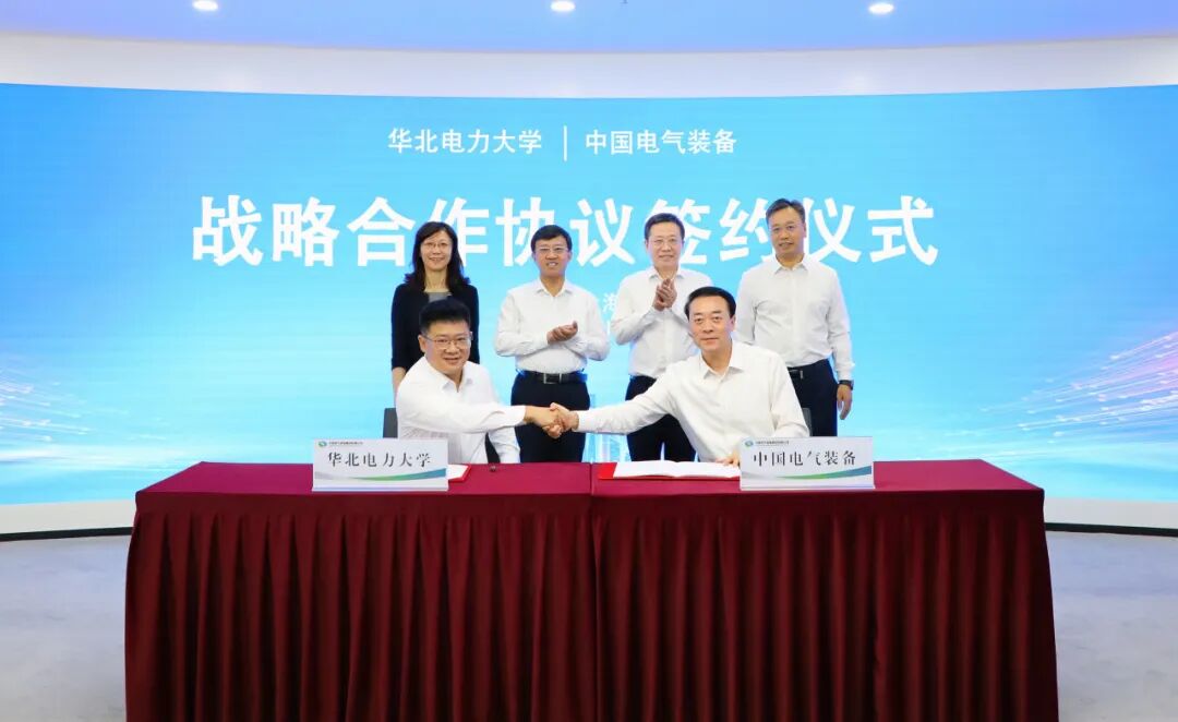 9月5日,华北电力大学与中国电气装备集团有限公司战略合作协议签约仪式在上海举行。华北电力大学党委书记汪庆华,校长、党委副书记毕天姝,中国电气装备集团有限公司党委书记、董事长李洪凤,党委副书记、总经理闫华锋共同见证签约。学校党委常委、副校长刘云鹏、中国电气装备党委副书记孟汉峰代表双方签署协议。签约仪式前,双方举行了会谈。