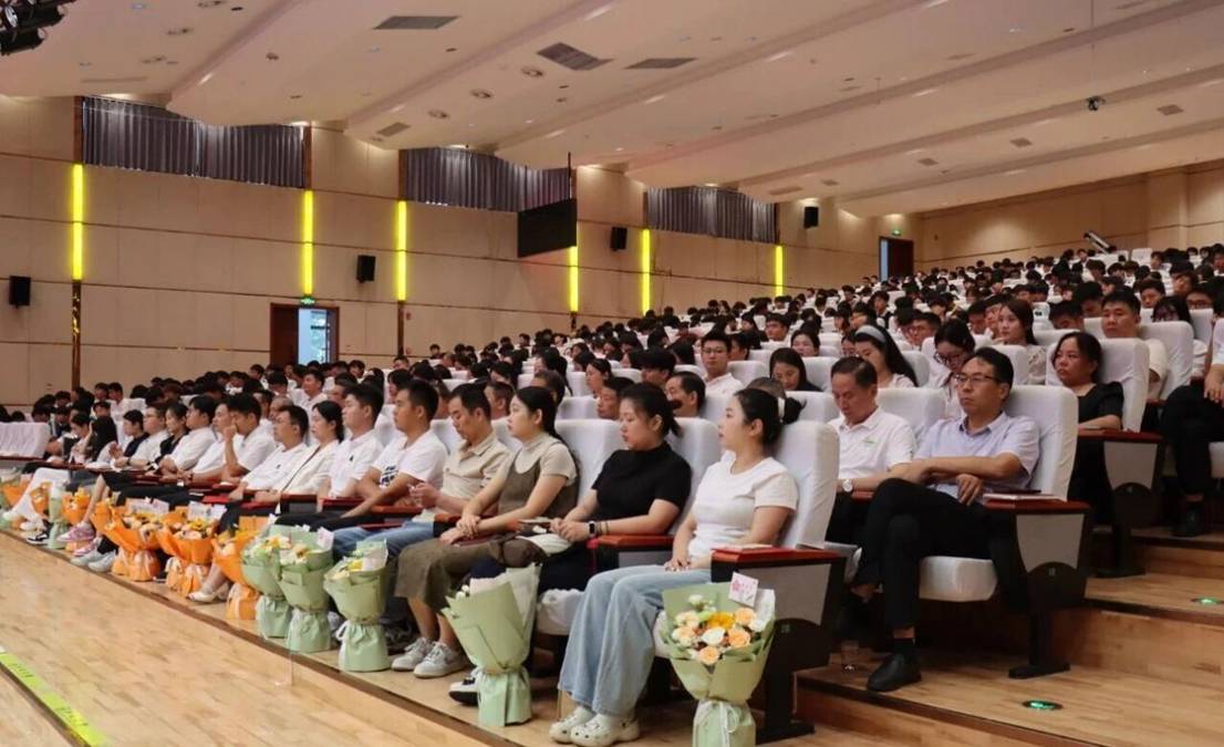 大会对2024-2025学年在教育教学工作中取得突出成绩的老师进行表彰。在热烈的掌声中,获奖教师依次上台领奖,学生代表向敬爱的老师们献上鲜花。一时间,鲜花与笑脸相映,荣誉与责任交织,会场洋溢着尊师重教的浓厚氛围。