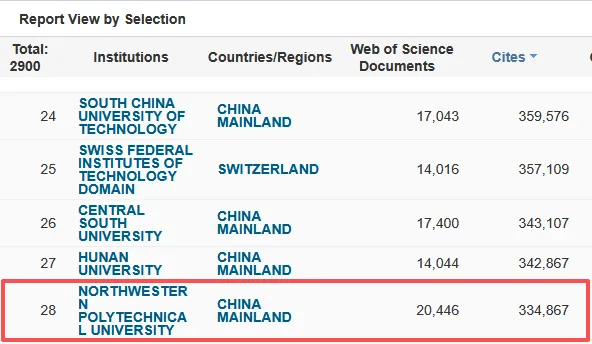 西北工业大学工程学esi论文数为20446篇,引用次数为334867次。总被引数在进入工程学esi全球前1%的所有机构中,排名全球第28位、内地高校第19位。
