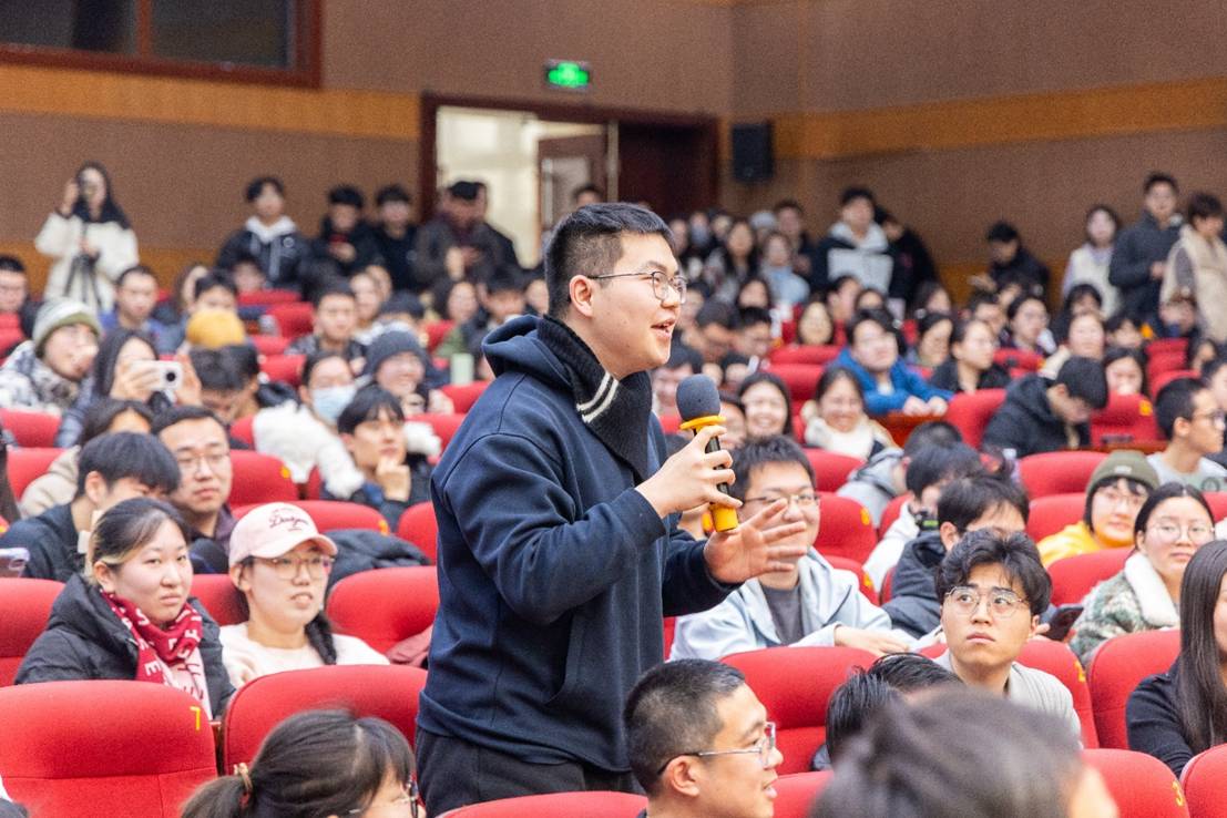 互动环节氛围热烈。国科大学子们就身份转变中的平衡之道、快餐文化下的人艺精神传承、科学与艺术的共通之处等多维度问题与冯远征互动交流。面对同学们的关切,冯远征逐一耐心作答。谈及科学与艺术的关联,冯远征表示“都需要坚守初心的执着,和突破自我的勇气”。在他看来,科研工作者在实验室里攻坚克难,演员在舞台上打磨角色,本质上都是对“极致”的追求。他言辞恳切、见解独到,既坦诚分享自身艺术生涯的感悟,又深刻剖析核心问题的本质,更饱含期许地寄语青年后辈,让现场师生深受启发。