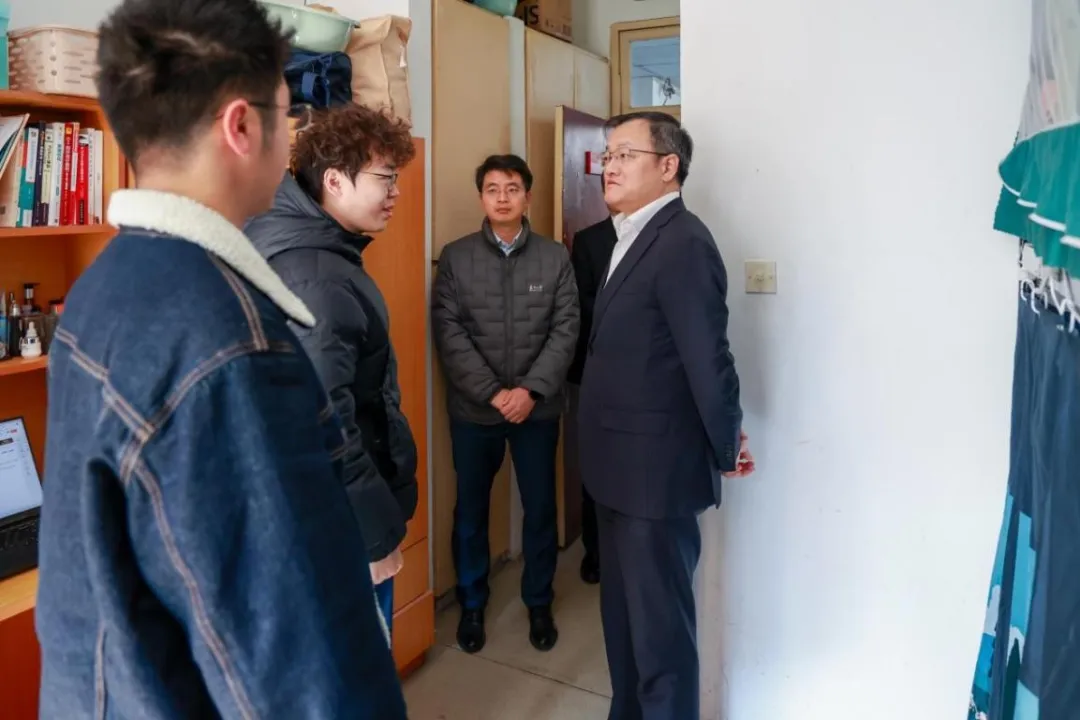 杜江峰一行在天赐庄校区沿路考察了东吴门、钟楼、博物馆等标志性建筑,听取了学校历史沿革、文物保护传承等情况介绍。调研过程中,杜江峰详细了解苏州大学的办学历程和人才培养、科学研究、社会服务等方面的建设成效,以及校企协同推进科技创新、促成技术成果转化等方面的特色做法。杜江峰一行还实地走访了苏州大学敬文书院,听取了书院“育人为本、德育为先、个性培养、全面发展”的建设理念和一站式学生社区建设情况介绍,并与寒假留校学生面对面交流。