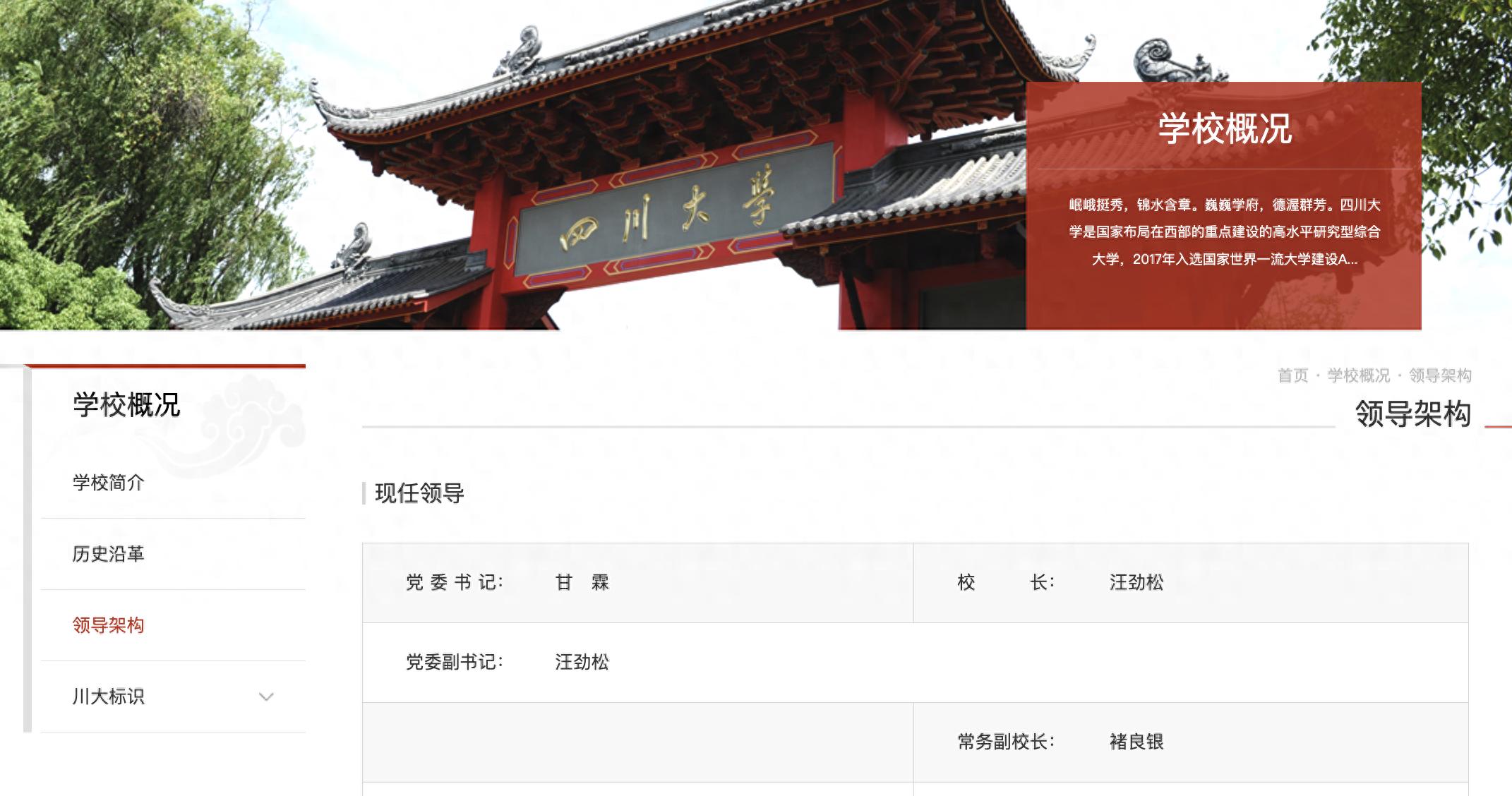 四川大学kok登录官网“现任领导”栏近日更新,九三学社四川省委会副主委褚良银担任四川大学常务副校长。