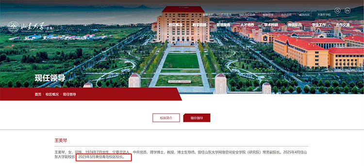近日,山东大学青岛校区kok登录官网显示,王美琴已于2025年5月兼任青岛校区校长。