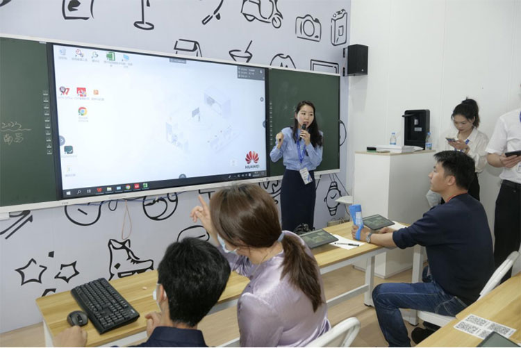 在华为展区,笔者也看到了华为对教育部三个课堂政策的积极响应,以创新基因驱动远程互动教室的探索和尝试,推出线上线下融合的远程互动教室方案。该方案以课堂教学为切入点,打破教学空间限制,推动区域间、学校间、教师间、学生间协同教学,实现优质资源的共享,助力数字化教育下沉至欠发达地区进入更多教室服务师生,促进教育普惠公平发展。