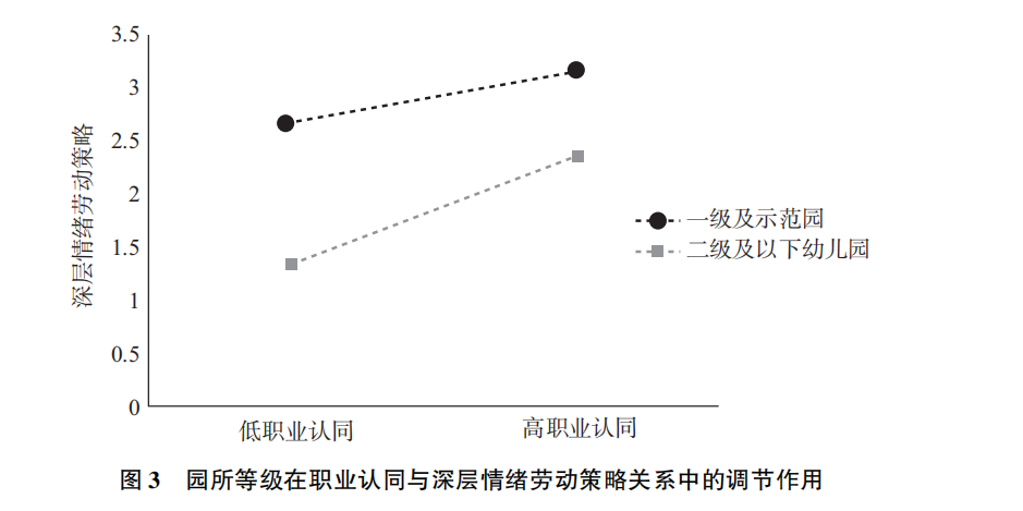 因此,提出第三个研究假设h3:园所等级可能调节职业认同对幼儿园教师深层情绪劳动策略的效应作用。