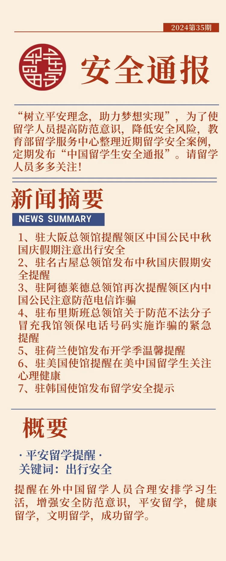 2024第35期中国留学生安全通报