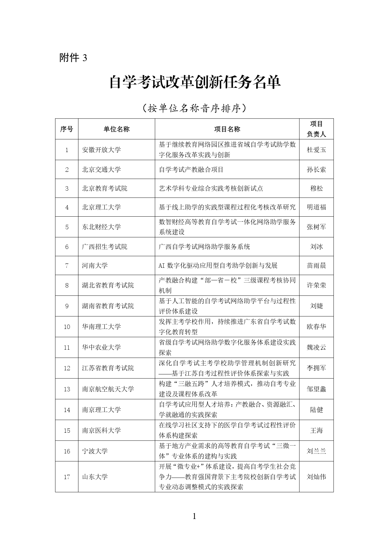 日前,教育部公示2024年学习型社会建设重点任务(高等继续教育领域)培育建设名单。经评议,有23个终身学习制度建设任务、61个学历继续教育教学改革创新任务、32个自学考试改革创新任务、103个非学历教育改革创新任务、50个三教统筹协同创新任务入围培育建设名单。公示期为2025年2月17日—21日。