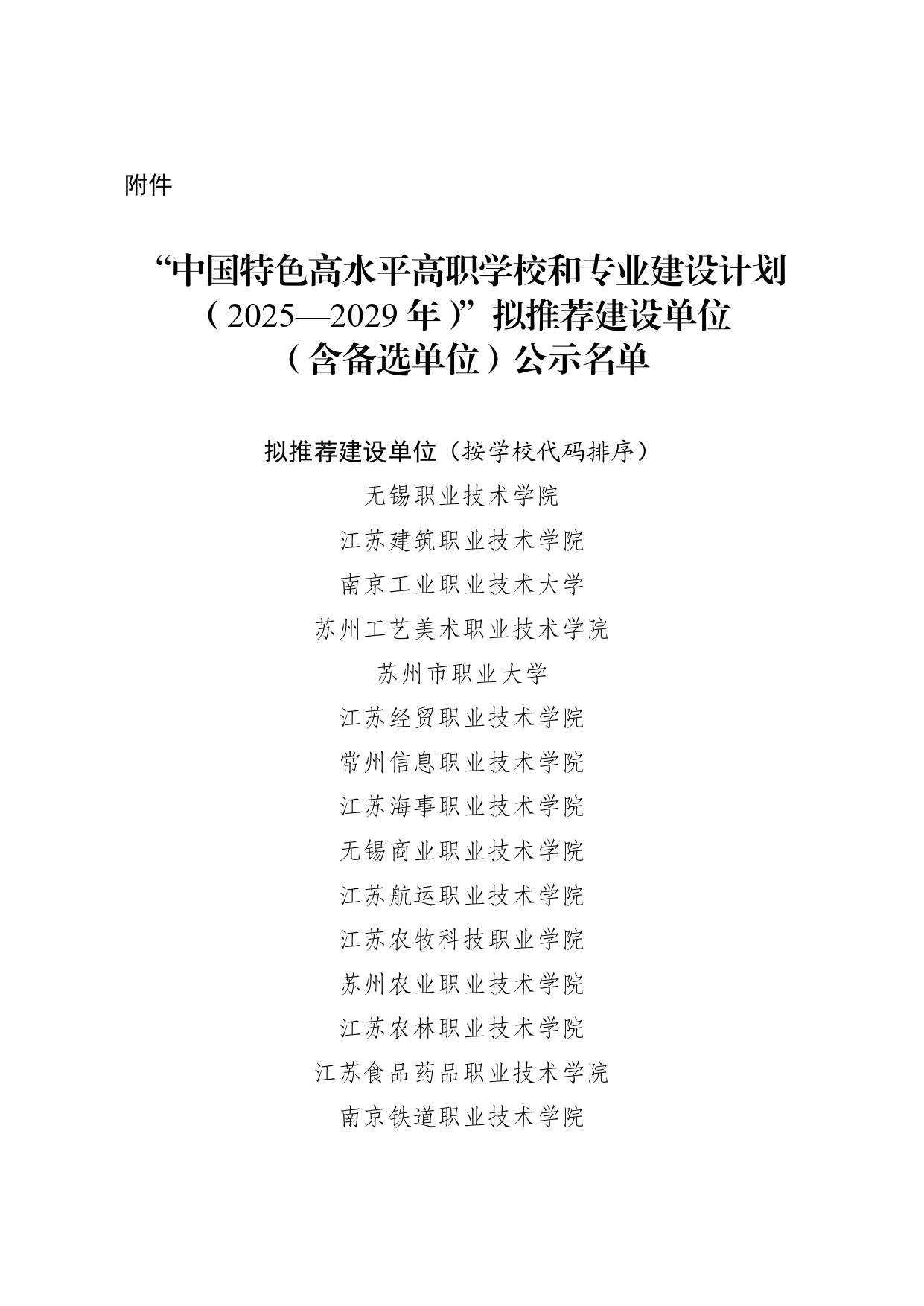 2月19日,江苏省教育厅发布《关于“中国特色高水平高职学校和专业建设计划(2025—2029年)”拟推荐立项建设院校的公示》。
