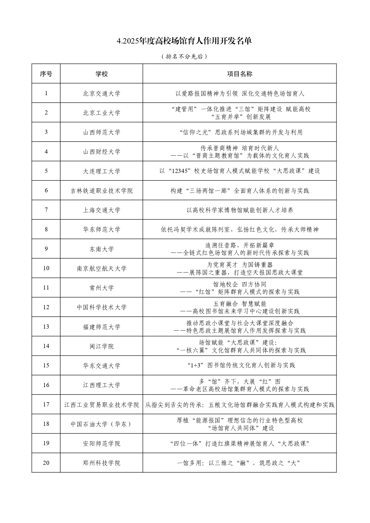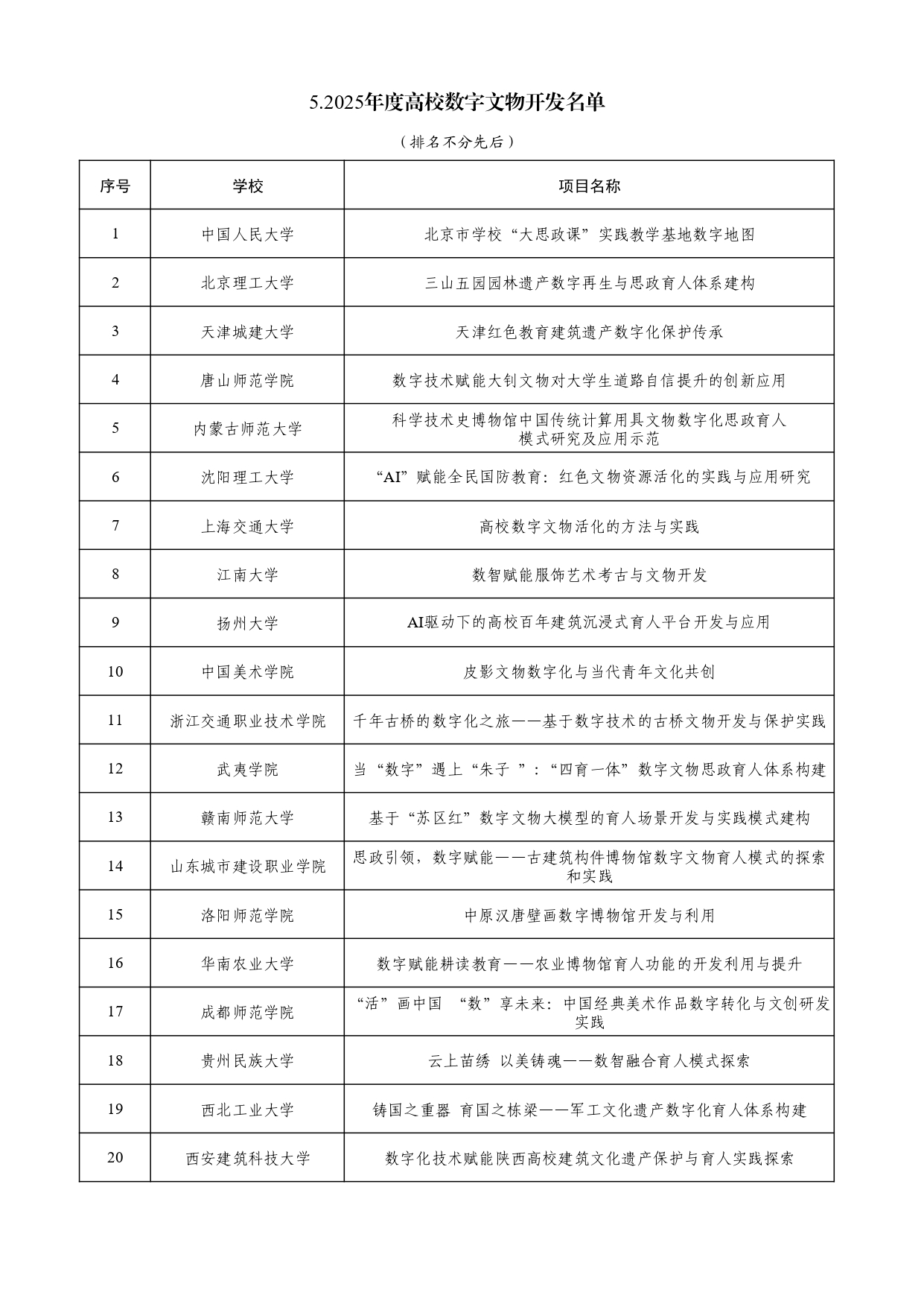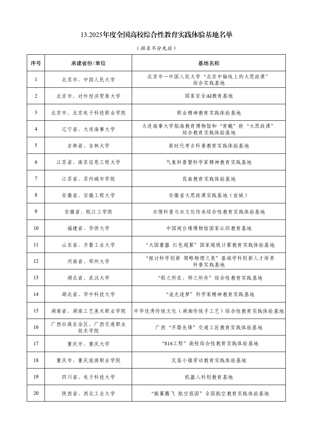 4月7日,教育部办公厅公布《2025年度高校思想政治工作质量提升综合改革与精品建设项目入选名单》。根据经费划拨方式说明,项目建设周期内,按年度分批次拨付建设经费。各项目2025年拨付经费为:高校思政工作中青年骨干10万元/人、辅导员名师工作室3万元/项、红色文化弘扬基地10万元/个、学生综合素质训练基地10万元/个、全国高校综合性教育实践体验基地10万元/个。