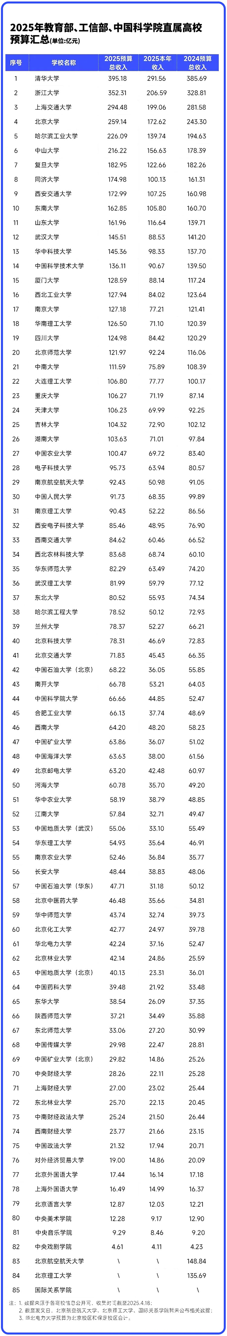4月18日,教育部、工信部、中国科学院直属高校陆续在其信息公开网公布了2025年部门预算。