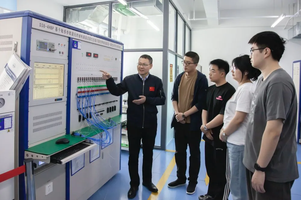 哈工大教授叶雪荣(左一)指导团队成员进行科研攻关。新华社发(尹霖 摄)