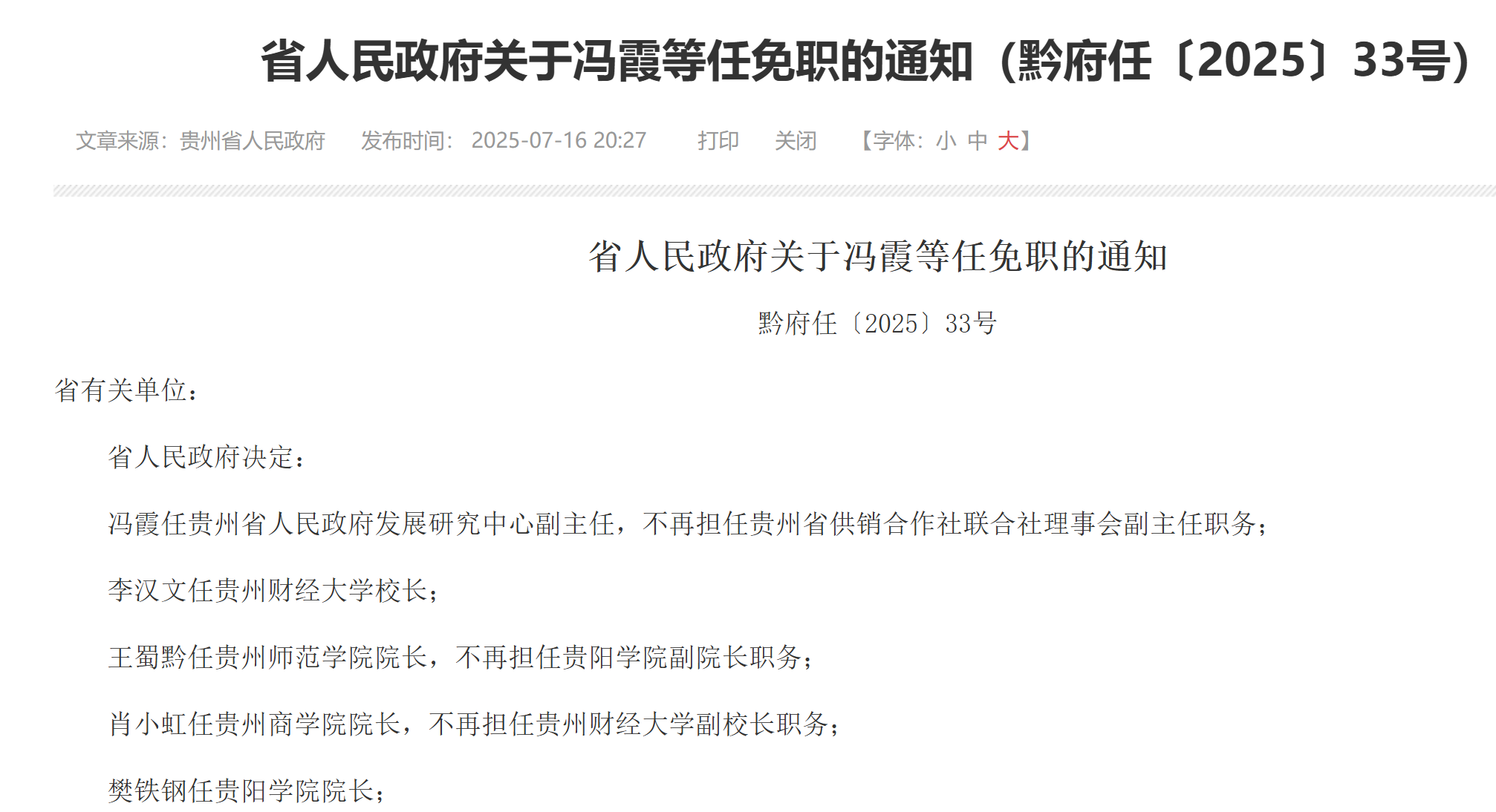 近日,贵州省政府发布一批人事任免通知,涉及多所高校。