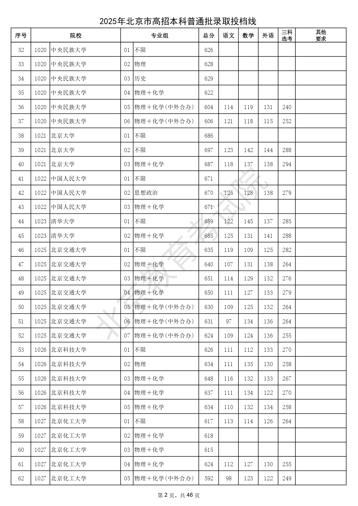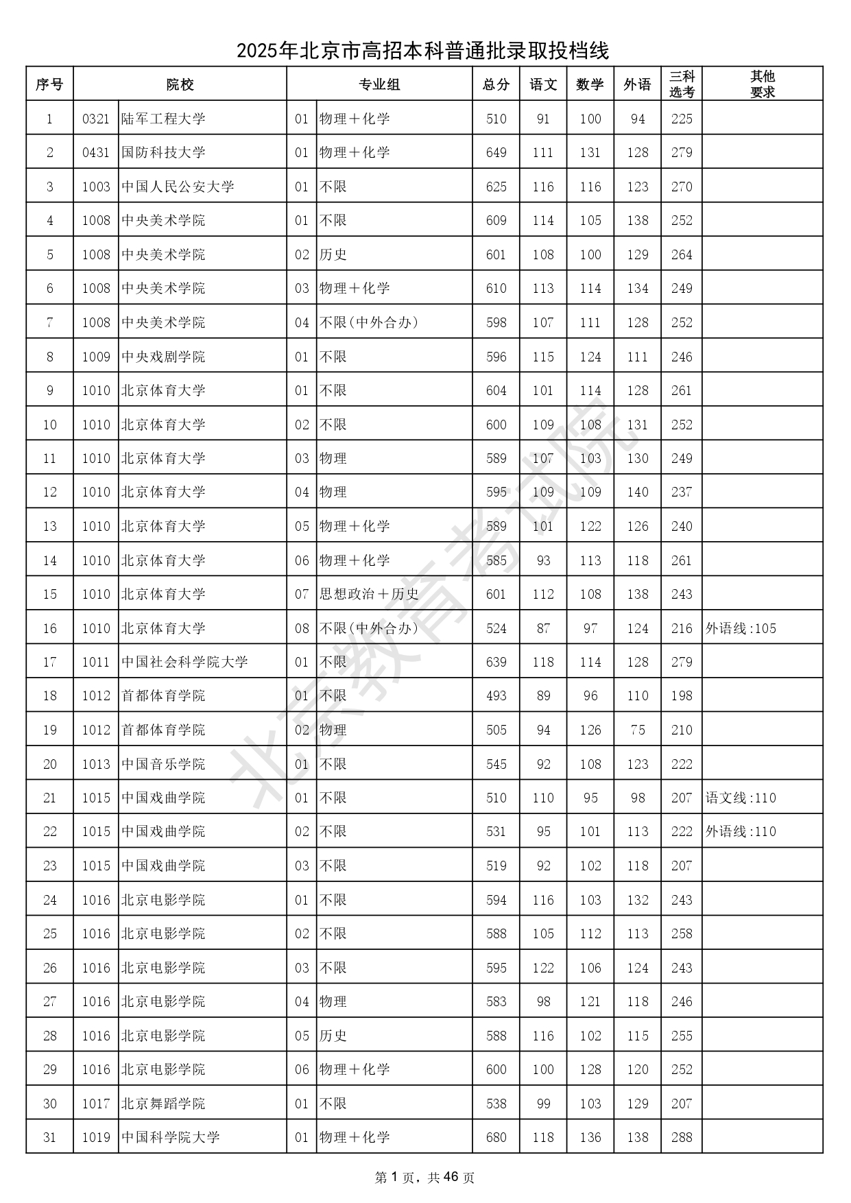 北大686,清华685!2025北京高考本科普通批录取分数线发布!