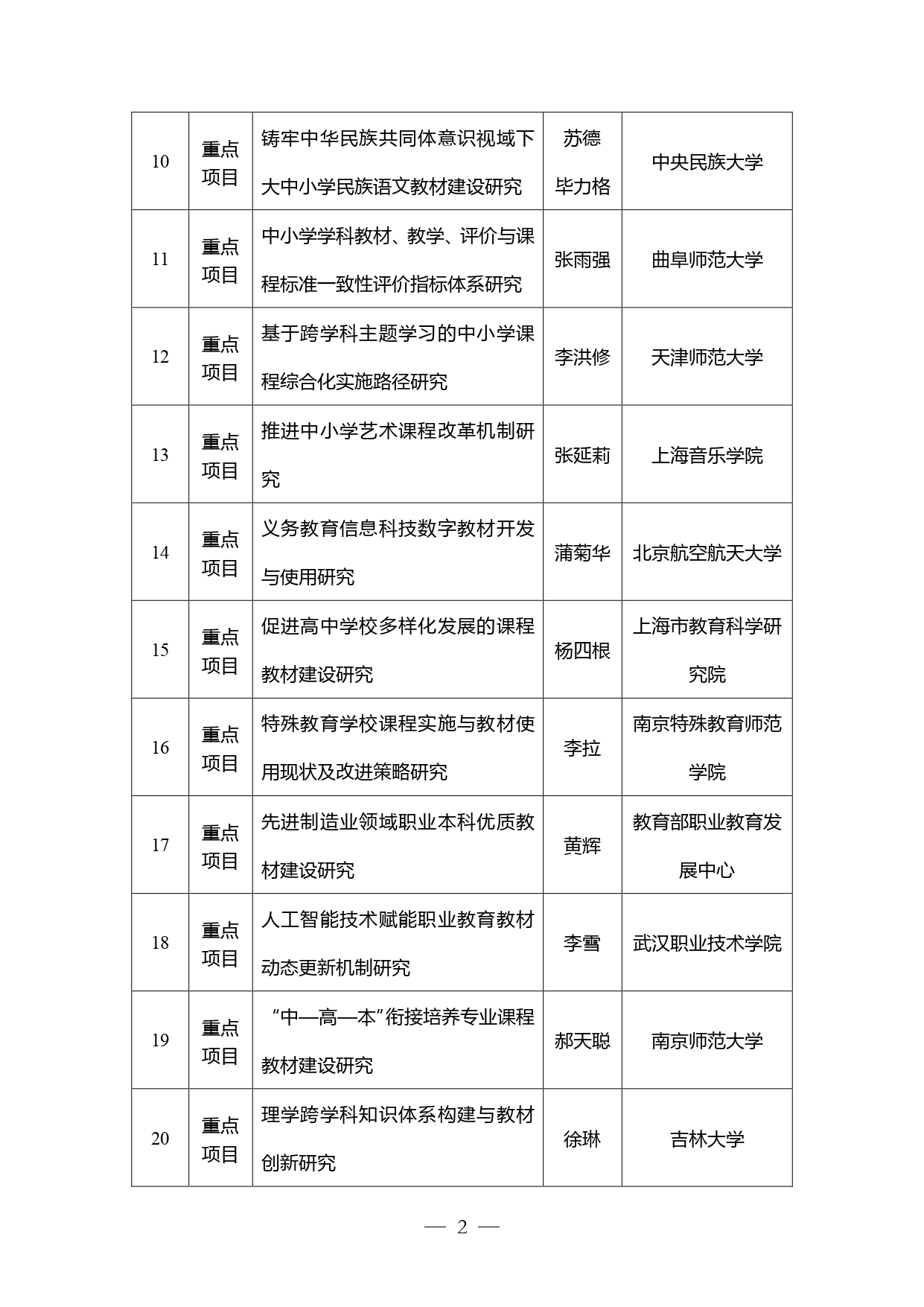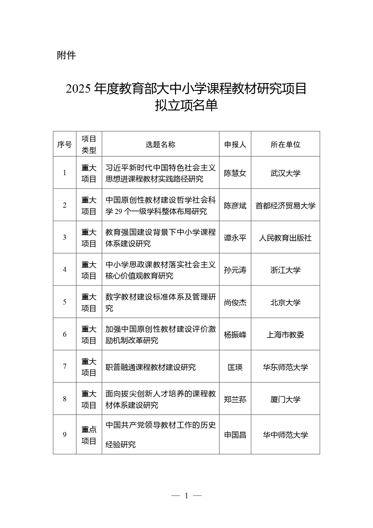 教育部公示2025年度大中小学课程教材研究项目拟立项名单