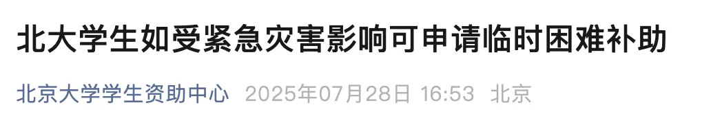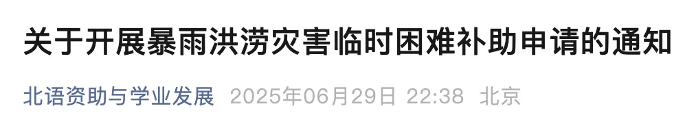 近日,我国华北地区遭遇极端强降雨天气,北京、河北、天津等地暴雨洪涝等自然灾害频发。为帮助受灾致困学生家庭渡过难关,全国各地多所高校发布通知,学生如家庭突遇紧急灾害可申请临时困难补助!