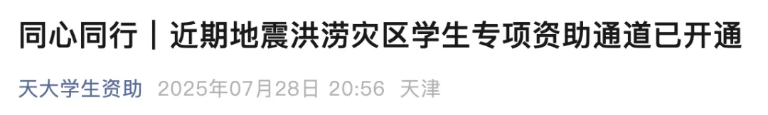 为保障受灾家庭学生的正常学习、生活,南开大学已第一时间启动常态化资助响应,部署各学院主动开展全方位摸排,点对点关心帮扶。