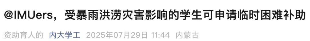 学校密切关注受灾学生的情况,及时为内大学子提供关心和帮扶,启动受灾家庭学生的临时困难补助通道。如因洪涝灾害导致家庭经济出现临时困难的学生,可联系学院辅导员申请临时困难补助。学校将及时为大家提供帮助,解决实际困难,保障同学们的学习生活。