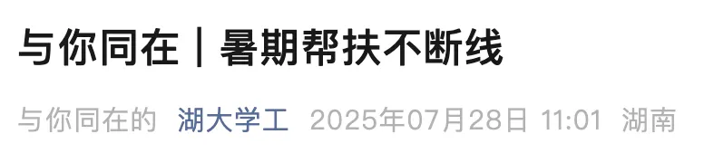 学校高度关注、时刻牵挂每一位同学。暑假期间,同学们如因自然灾害或其他突发事件造成人员伤害或经济损失,导致家庭经济出现临时困难,可通过湖南大学“一网通办”平台线上申请临时困难补助,学校将快速完成审核手续,切实保障同学们的学习生活。