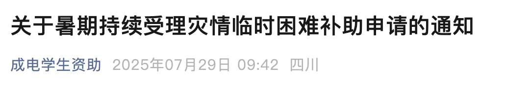 学校始终心系每一位学生及其家庭成员,为及时为同学们提供援助,暑期将持续受理灾情临时困难补助申请,切实保障同学们的学习与生活。