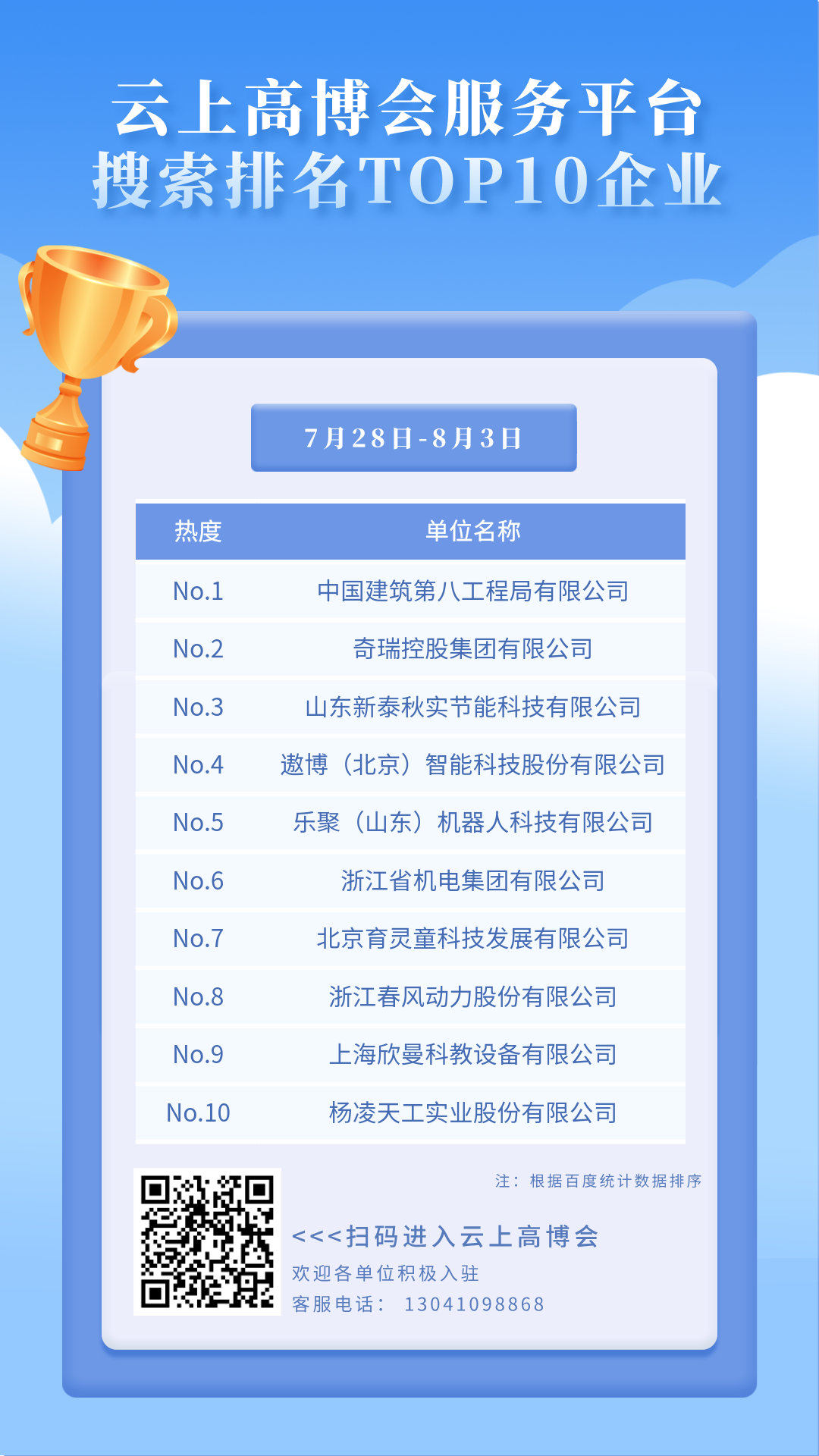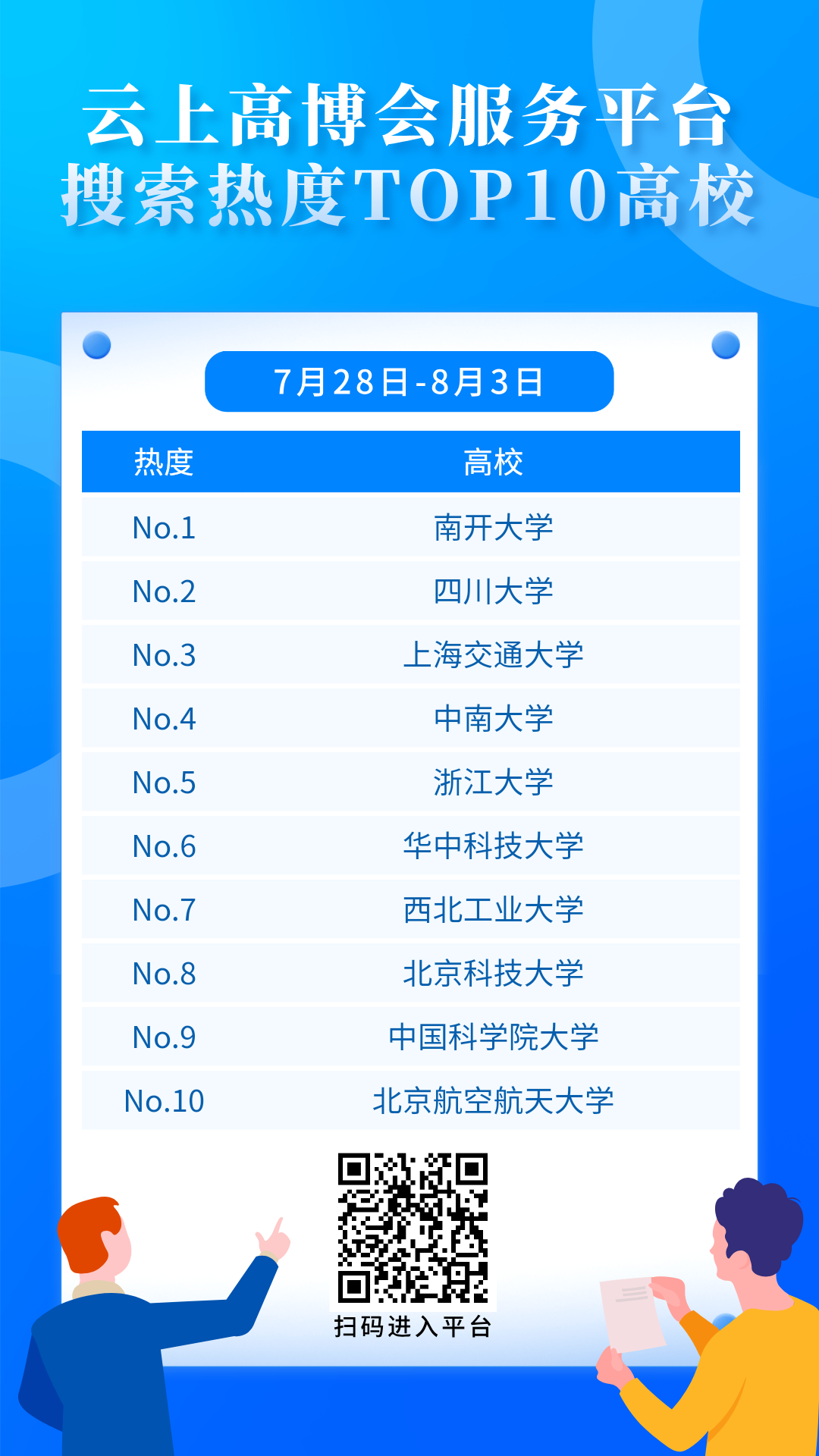 云上高博会热搜榜(7.28-8.3)top10企业、高校榜单揭晓