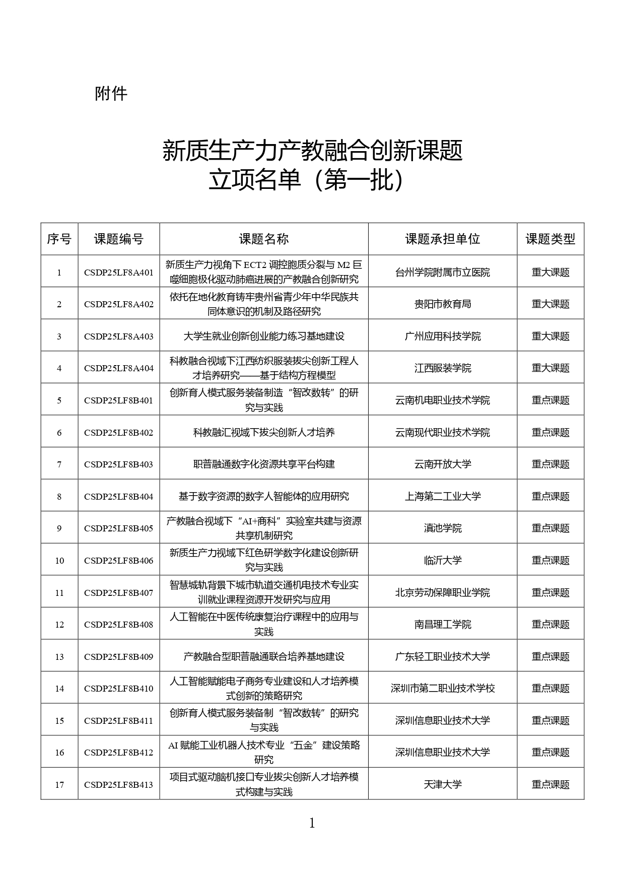 教育部公布第一批新质生产力产教融合创新课题立项名单