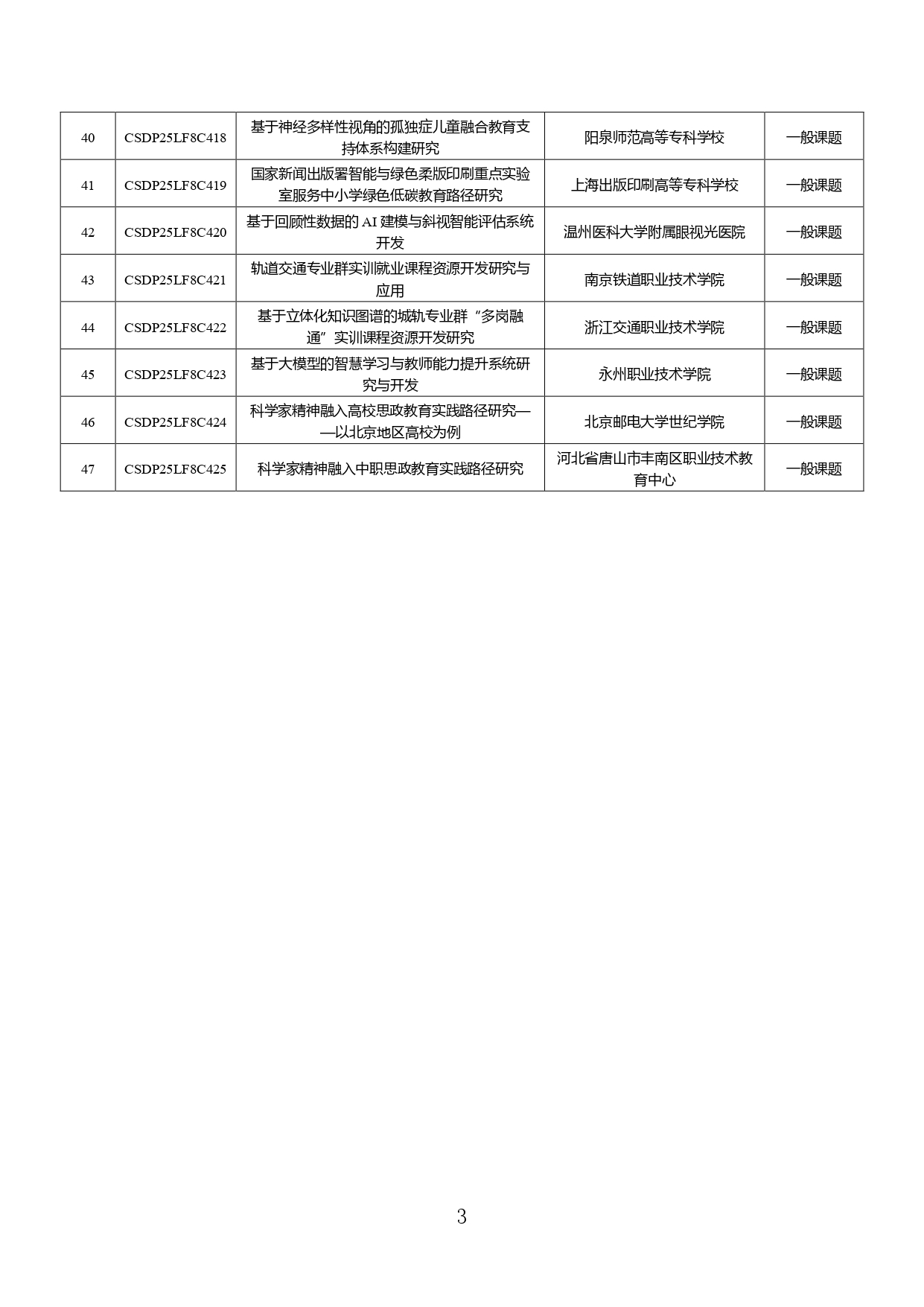 根据《关于组织开展新质生产力产教融合创新课题研究的通知》,各有关单位积极组织报送了课题申报书。按照申报要求,规建中心组织专家开展了课题评审。现将第一批47项“新质生产力产教融合创新课题”予以公布。其中,重大课题4项,重点课题18项,一般课题25项。