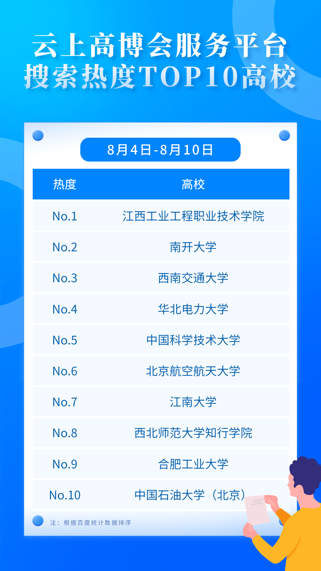 云上高博会热搜榜(8.4-8.10)top10企业、高校榜单揭晓