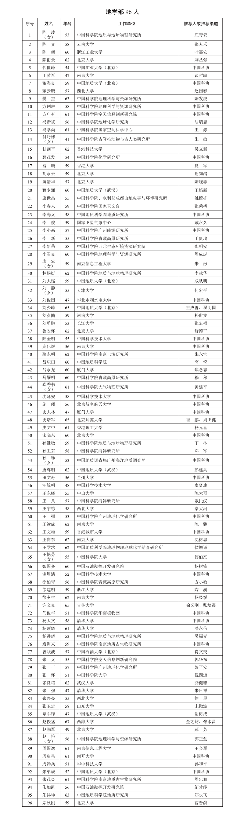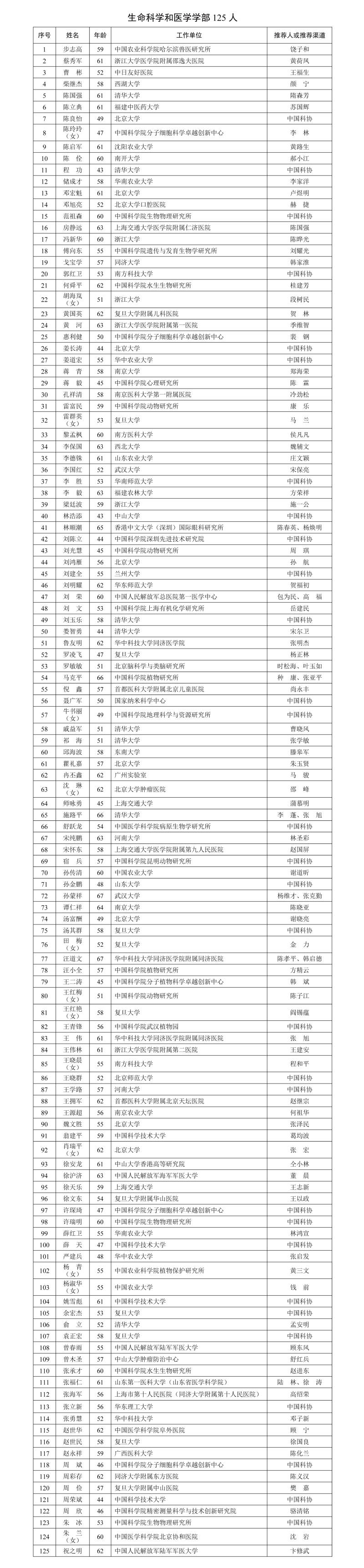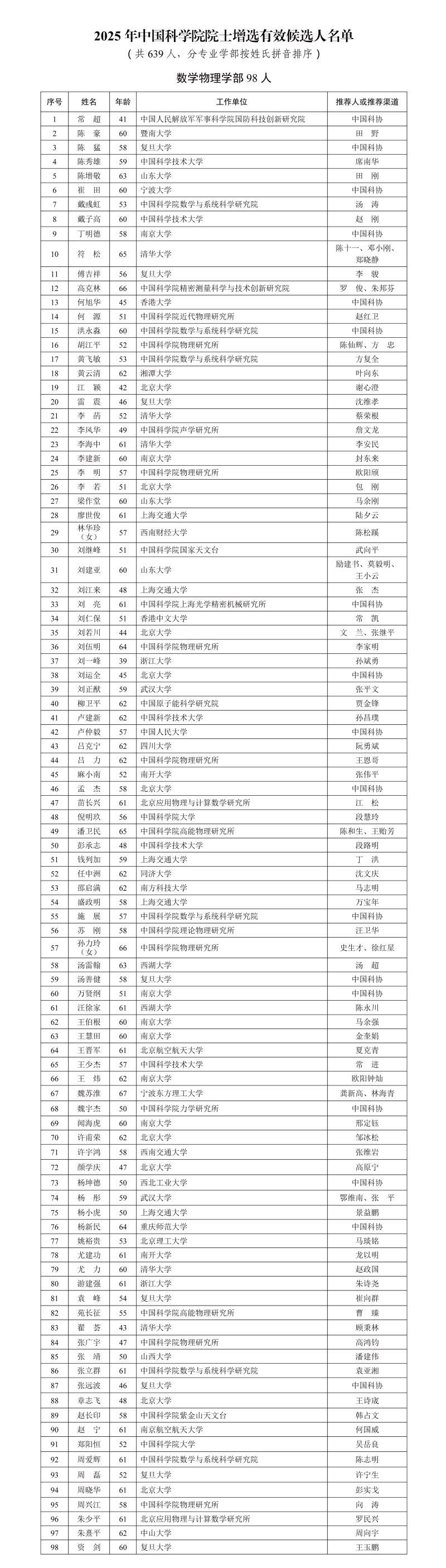 中国科学院2025年中国科学院院士增选推荐工作已经结束。经中国科学院学部主席团审议,中国科学院党组审定,确认2025年中国科学院院士增选有效候选人639人。根据《中国科学院院士增选工作实施办法(试行)》的规定,现将有效候选人名单予以公布。名单如下: