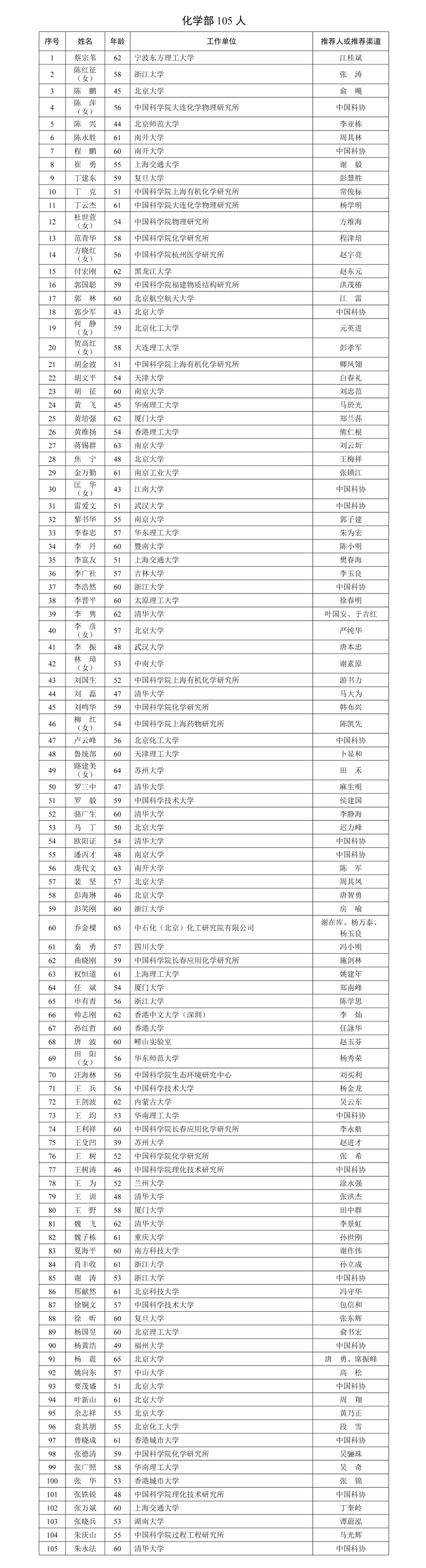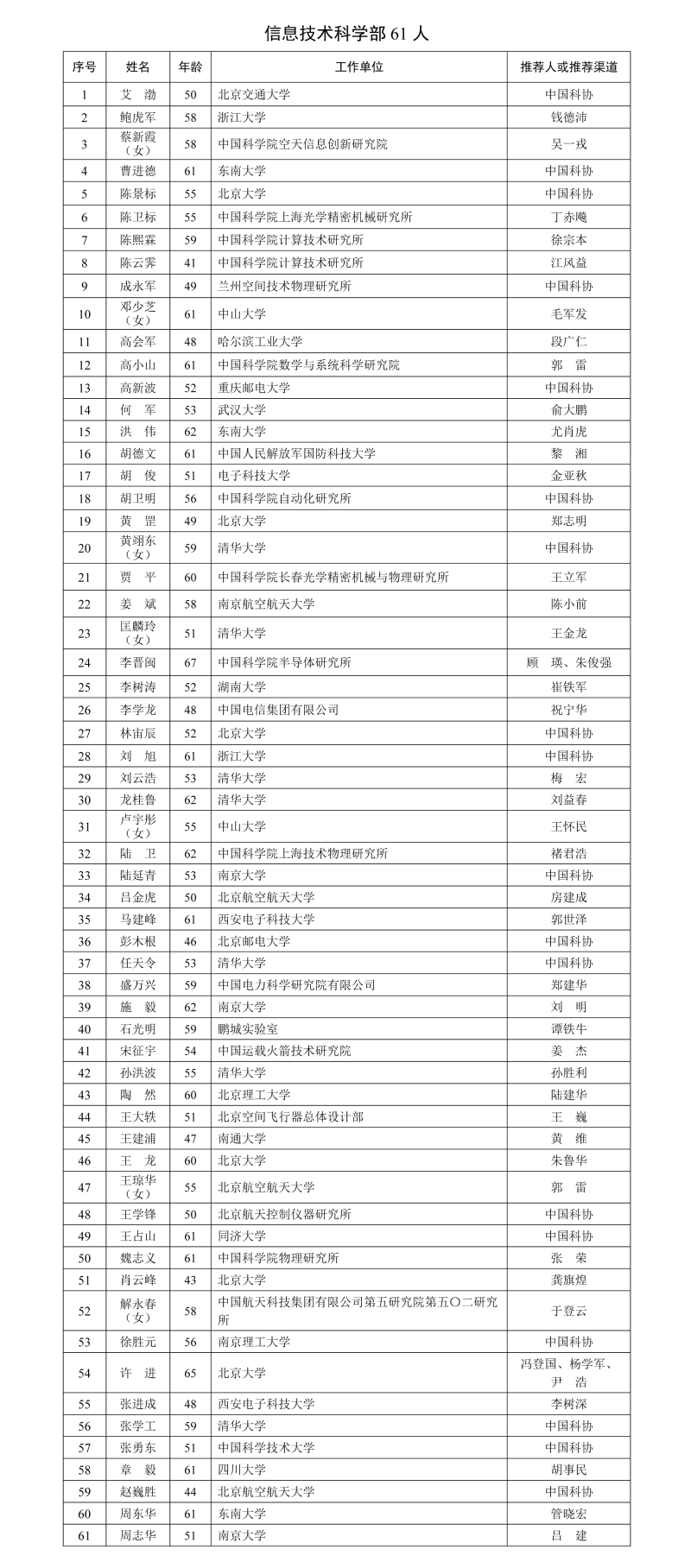 中国科学院共有639位专家学者进入有效候选人名单(另有特别领域推荐有效候选人50人)。中国工程院共有617位专家学者进入有效候选人名单(另有特别通道有效候选人43人)。