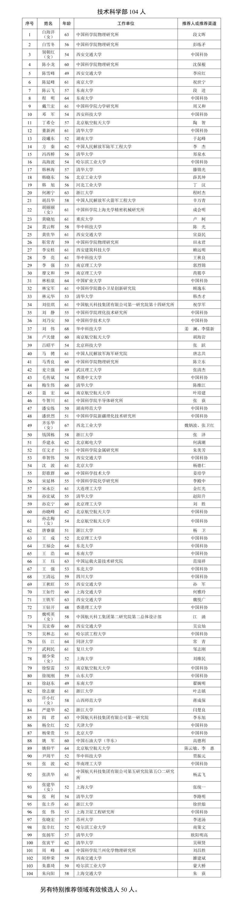 中国工程院2025年院士增选提名工作已经结束。经中国工程院第八届主席团第十六次会议审议,中国工程院党组审定,确认中国工程院2025年院士增选有效候选人660人。根据《中国工程院院士增选工作实施办法》的规定,现将有效候选人名单予以公布。