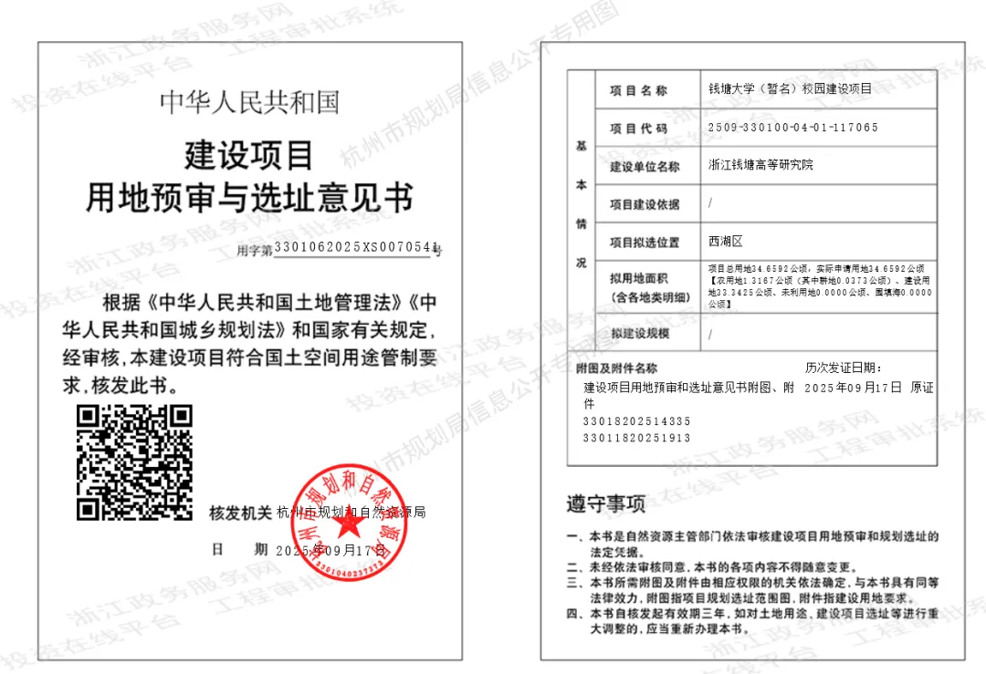 9月24日,杭州市规划和自然资源局发布钱塘大学(暂名)校园建设项目的建设项目选址意见书和用地预审。这表明,钱塘大学的选址和总用地面积已基本明确,整体建设工作将步入新阶段。