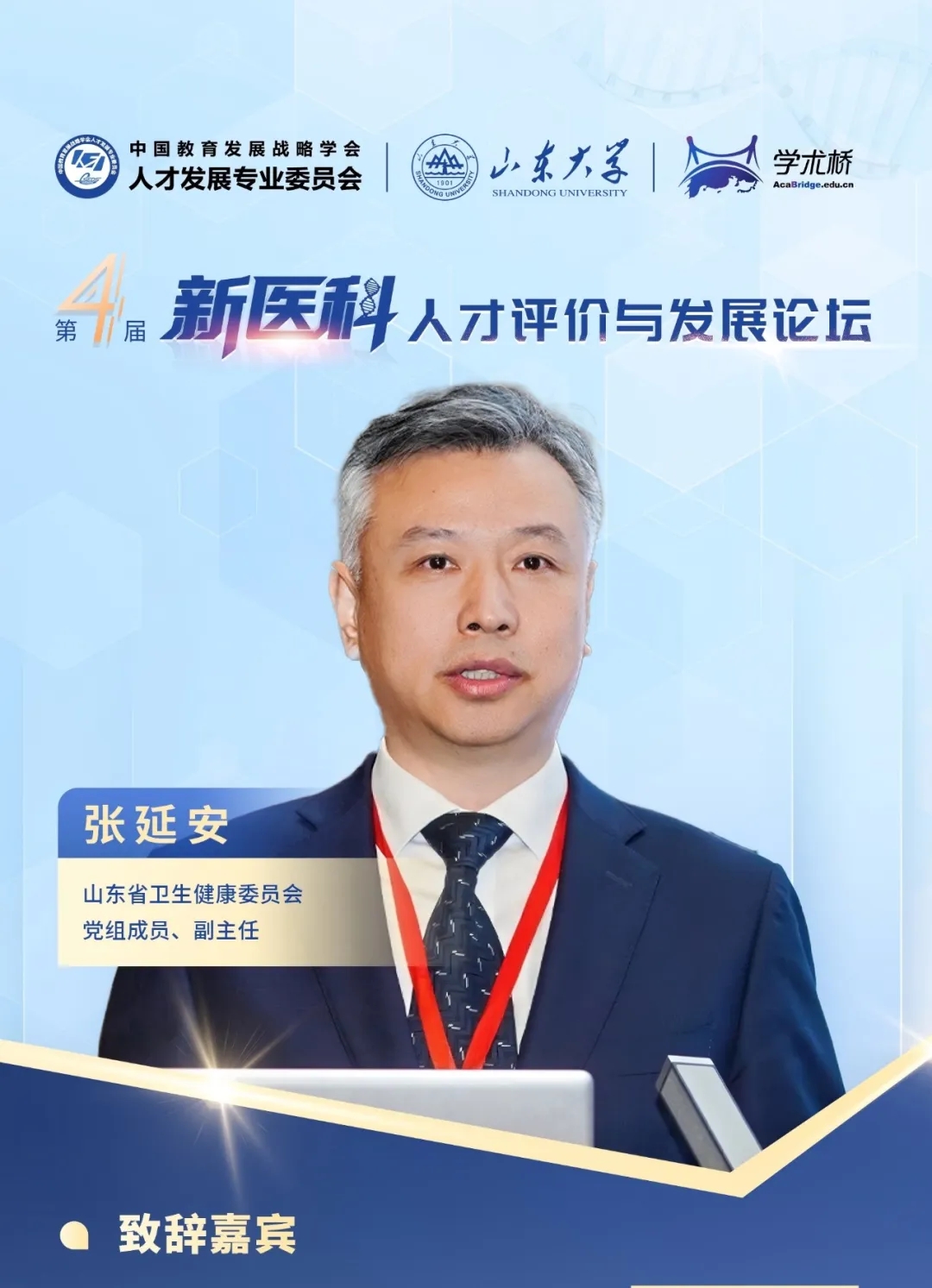 论坛开始,山东大学党委常委、常务副校长吴臻,中国教育发展战略学会常务副会长兼人才发展专委会理事长李志民,山东省委教育工委委员、省教育厅党组成员、副厅长王浩,山东省卫生健康委员会党组成员、副主任张延安,山东省委组织部人才工作二处处长、一级调研员刘炳宏分别发表致辞。